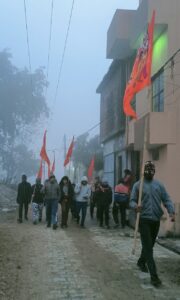 “राम मंदिर आंदोलन के संघर्ष की कहानी हमने अपने बड़े बुजर्गो से सुनी है की उन्होंने अयोध्या मे राम जन्म भूमि पर मंदिर बनाने को लेकर कितना संघर्ष किया था, आज वो दिन आ ही गया जब श्री राम लला अपने मंदिर मे विराजमान होंगे, इसको हम सभी युवाओ मे खासा उत्साह है, इसी उत्साह के चलते हम सभी युवा कड़ी ठण्ड और घने कोहरे के बावजूद प्रभात फेरी निकाल रहे है।”