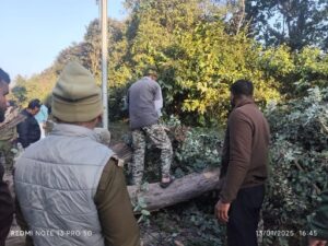 वन कर्मियों व रेलवे की टीम ने हटाया मौक़े से पेड़, घंटे भर बाद सुचारु हुआ रेल यातायात